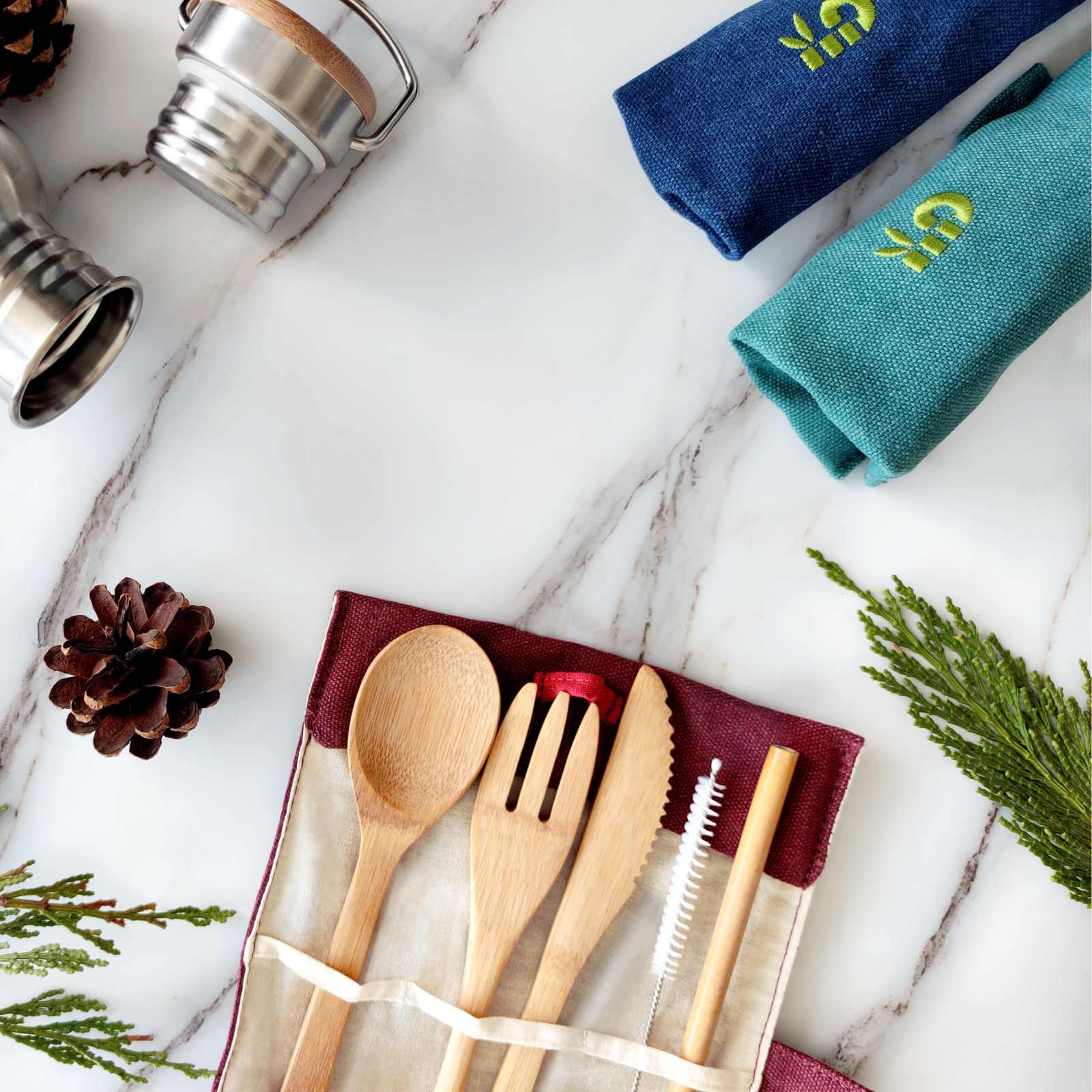 Set di posate in bambù personalizzate con astuccio: un regalo di qualità per mettere in mostra il tuo logo.